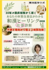 20年の臨床経験から導く 和漢ヒーリング出張診断 不調を根本から整える体質改善に!